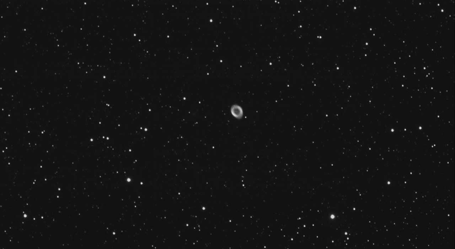 This is a tiny object in the Tak FSQ scope but it came out pretty well. The central mag 15 star is easily visible. This monochrome image has had only minimal processing. Each sub-exposure was dark frame subtracted. I simply aligned and stacked the sub-exposures in Images Plus and then did a linear contrast stretch in Photoshop. |
